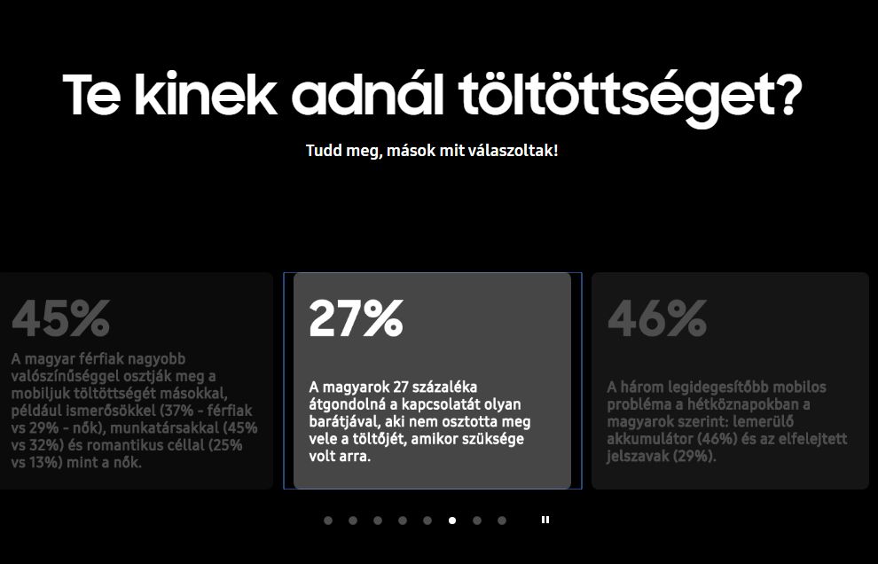 „A legújabb technológia, amely lehetővé teszi a töltés vezeték nélküli megosztását, csökkenti a hagyományos töltőktől való függést és a modern digitális viselkedést is alakítja – mondta el Samu Zsófia, a Samsung magyarországi kommunikációs vezetője. – A kutatás eredményei azt mutatják, hogy a töltöttség megosztása erősíti a szociális kapcsolatainkat és elősegíti a kölcsönös bizalom kialakulását. A töltésmegosztás a jövőben teljesen általánossá válhat, és akár barátságok vagy párkapcsolatok elindítója is lehet.”
