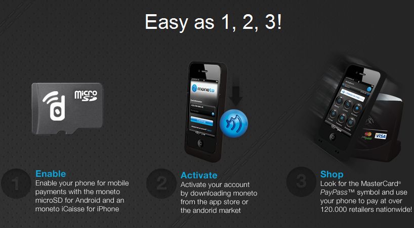 A CES 2012 egyik átütő újdonsága a Moneto nevéhez fűződik. Bemutatták ugyanis egyedi megoldásukat, mely egy egyszerű microSD kártya, amit a telefonokba behelyezve NFC-képessé válik a telefon. Az érintés nélküli fizetésre bemutatáskor csak androidos vagy iOS rendszert futtató mobilok használhatók, egyelőre csak ezek támogatása megoldott. Az iPhone-hoz megvásárolható kártya 80 dollárba kerül, ebből 10 dollár költhető, később azonban 30 dollárba kerül majd az újdonság. Android rendszerhez 2012 második negyedévétől lesz hozzáférhető a Moneto NFC-s microSD-je.