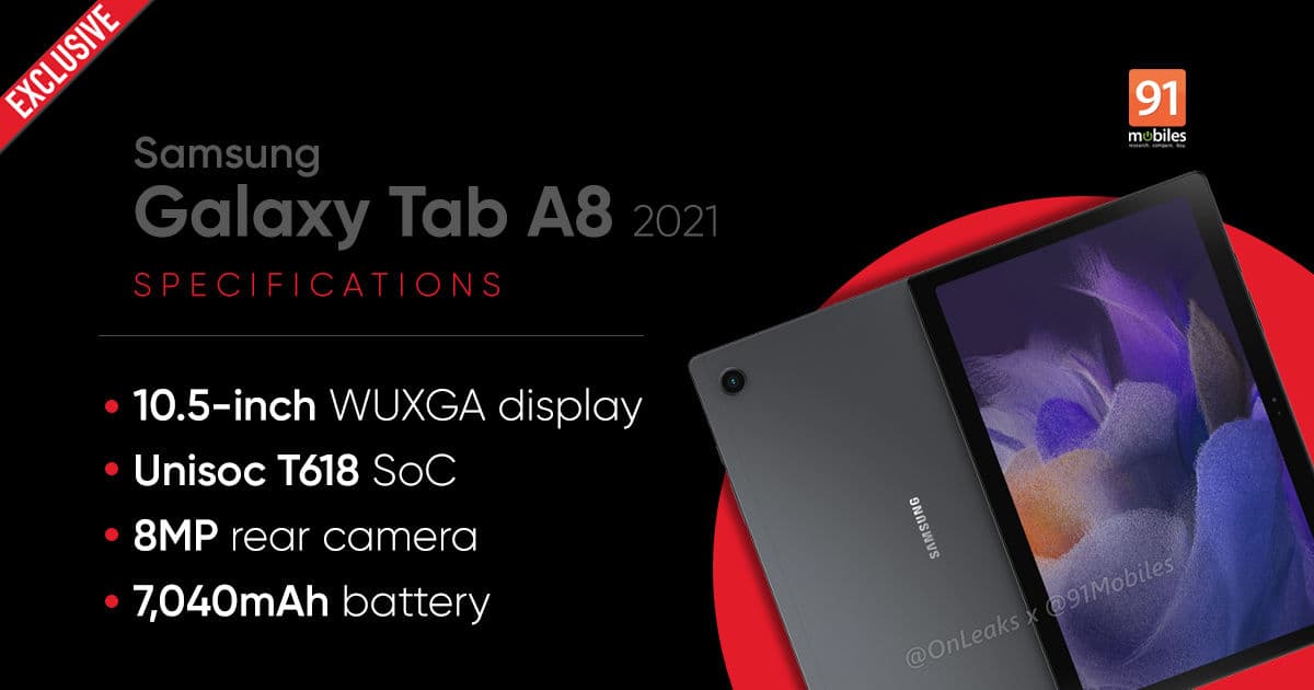 Kiszivárogtak a Samsung Galaxy Tab A8 10.5 (2021) részletei: 10.5 colos kijelző 80 ezer forintos ár, LTE verzió is érkezik belőle.