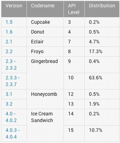 Egyre több mobilra érhető el az Android 4.0 Ice Cream Sandwich frissítés, így rohamosan nő világszerte az ICS-t futtató mobilok és táblagépek aránya. Egy friss – egészen pontosan két héten át tartó – felmérés, a Google Play hivatalos adatai szerint jelenleg az androidos készülékek majdnem 11 százalékán található meg az Android legújabb változata. Leginkább a Samsung i9300 Galaxy S III és a HTC One X csúcsmodellek piacra kerülése után ugrott meg jelentősen az ICS aránya és innentől kezdve ez csak növekedni fog. Mindezek ellenére egyértelmű, hogy brutálisan, több mint hatvan százalékkal abszolút első helyen áll p az Android 2.3.3 Gingerbread. Ahhoz képest, hogy a Google 2011 októberében leplezte le az Ice Cream Sandwichet, kilenc hónap után rendkívül gyengének mondható a 11 százalékos arány.