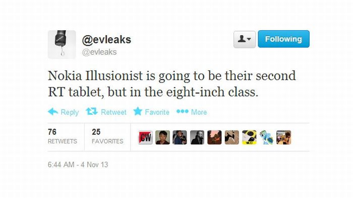 A finn gyártó hamarosan bemutathatja legújabb táblagépét, a Windows RT rendszert futtató Nokia Illustionist-et. A 10 colos Nokia Lumia 2520 után érkezhet egy következő táblagép, méghozzá ezúttal 8 colos képátlóval. Az Evleaks információi szerint a 8 colos modell Nokia Illusionist fejlesztési néven dolgoznak rajta, Windows RT rendszerrel várható, akárcsak a Lumia 2520. Sajnos egyelőre nem tudni sem a specifikáció részleteit, sem azt, hogy mikor debütál a tablet. Amennyiben a hír igaznak bizonyul, úgy a Nokia igen komolyan veszi a táblagépek piacát, így próbálhat konkurenciát állítani az Apple iPad Mini, az LG G Pad 8.3, valamint az Amazon Kindle Fire HDX 8.9 készülékeknek. Más kérdés, hogy a rendszerrel és a várhatóan igen magas árral ez mennyire jön be a finneknek.