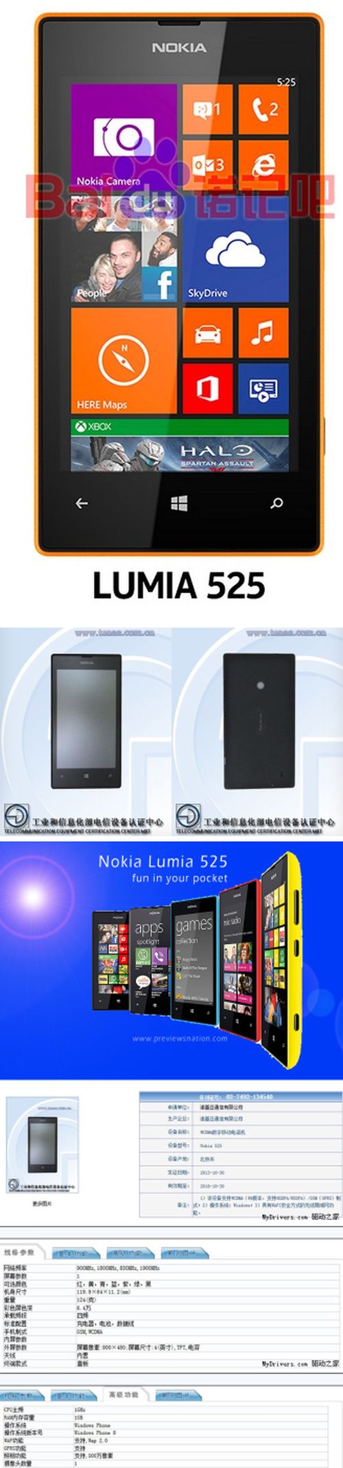 A finn gyártó hamarosan bemutathatja a Nokia Lumia 525 mobilt, amely feltehetően legalább akkora sikerre számíthat mint a most futó elődje, a Nokia Lumia 520. Ez utóbbi jelenleg a világ legjobban fogyó Windows Phone 8-as okostelefonja, hiszen a megfelelő tudáshoz igencsak karcsú ár tartozik, így rendkívül sokan keresik és vásárolják. Az új készülék gyakorlatilag az előd ráncfelvarrott változata, így WP8 rendszer, 1 gigahertzes, kétmagos Snapdragon 400 processzor, 4 colos, 480×800 pixel felbontású IPS LCD megjelenítő várható, amely a kesztyűs használatot is lehetővé teszi. A modell érdekessége, hogy az előző készülékben található 512 megabájt RAM helyett 1 gigabájtot kap.