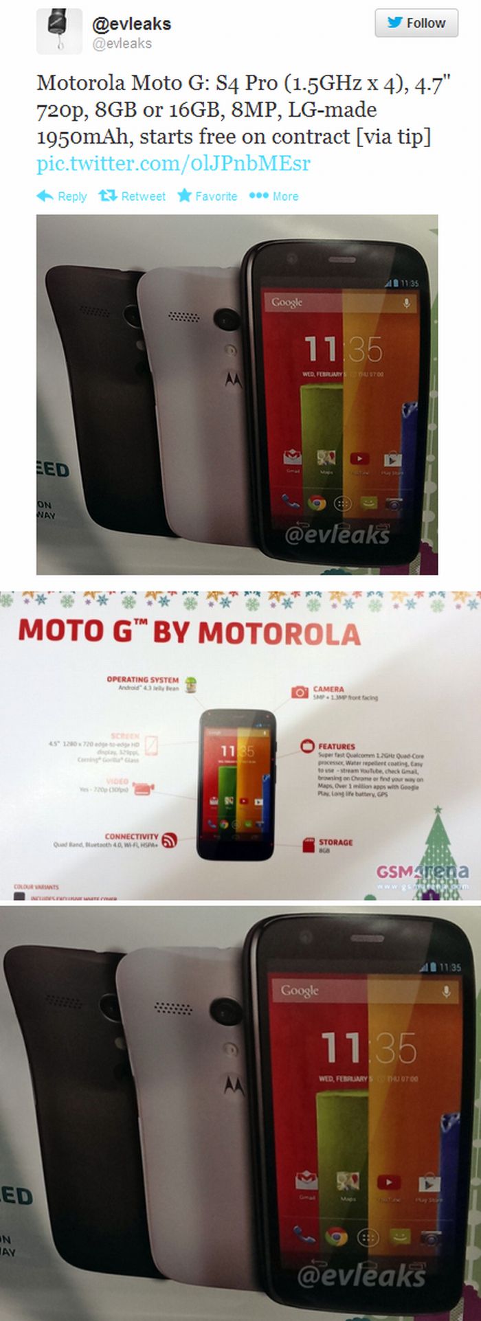 A friss hírek szerint az amerikai gyártó – vagy inkább a Google – egy megfizethető árú, ennek megfelelő tudású okostelefon piacra dobását tervezi, ez lesz a Motorola Moto G. A Moto G fekete és fehér színben lesz megvásárolható, a 4.7 colos, 720p felbontású kijelző, a 1.5 gigahertzes, négymagos Snapdragon S4 Pro processzor, a 8 vagy 16 gigabájtos tárhely, valamint a 8 megapixeles hátlapi kamera és az 1950 mAh-s akkumulátor igazán kívánatos tudást jelenthet azok számára, akik nem akarnak mindenáron csúcsmobilt birtokolni. A feltehetően megjelenéskor Android 4.3 Jelly Bean, majd később Android 4.4 KitKat rendszert futtató Motorola Moto G az Egyesült Államokban hűségszerződéssel ingyen hazavihető lesz, hiszen a jobb tudású Motorola Moto X már most mindössze 100 dollárt kóstál két év rablánccal. Az európai változat 4.5 colos képátlóval, Android 4.3 Jelly Bean rendszerrel, öt megapixeles kamerával és 1.2 gigahertzes Snapdragon processzorral várható.