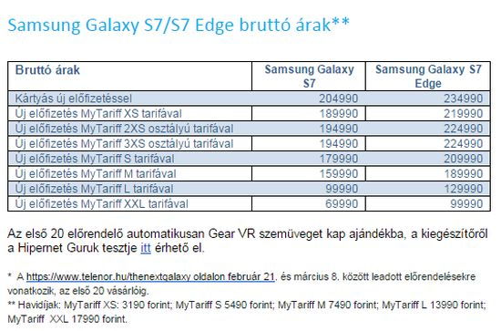 A leggyorsabb 20 vásárló, aki a Telenor felületén adja le elõrendelését a két új Galaxyra ajándék Galaxy Gear VR készüléket kap, emellett pedig minden elõrendelõ 3 teljes nappal hamarabb jut hozzá a friss készülékekhez mint a magyarországi hivatalos üzletekbe kerülés dátuma, március 11.