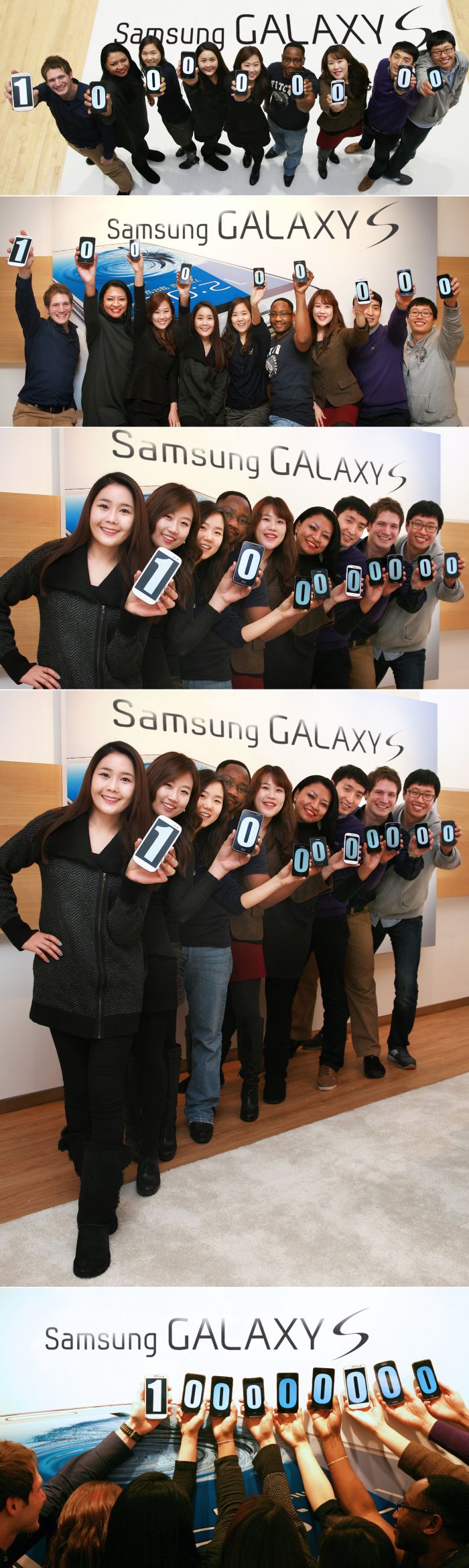 Két évvel és hét hónappal az első Samsung Galaxy S okostelefon bemutatása után a Galaxy S sorozat értékesítése átlépte a 100 milliós határt. A sorozat sikerét megalapozó, 2010 júniusában megjelent Samsung Galaxy S 24 millió példányban kelt el, sikerét azonban hamarosan elhomályosították utódai, hiszen a 2011 áprilisában debütáló Samsung Galaxy S II közel 40 millió példányban fogyott. Népszerűségét mutatja, hogy 11 hónappal ezelőtt még „csupán” 20 milliónál járt a számláló. A sorozat legnagyobb érdeklődést kiváltó darabja azonban egyértelműen a Samsung jelenlegi zászlóshajója, a Galaxy S III, amely számos téren mutatott utat a csúcskategóriás telefonok világában. A 2012 májusában, azaz mindössze 9 hónappal ezelőtt megjelent készülék mára átlépte a 40 milliós értékesítési küszöböt – ami cseppet sem csoda, figyelembe véve, hogy egy átlagos napon 190 000 példány fogy belőle szerte a világban. Magyarországon a 2012 júniusában debütált Samsung Galaxy SIII igen nagy népszerűségnek örvend, és már akár hat* különböző színben, valamint egyes operátoroknál akár LTE-s verzióban is megvásárolható.
