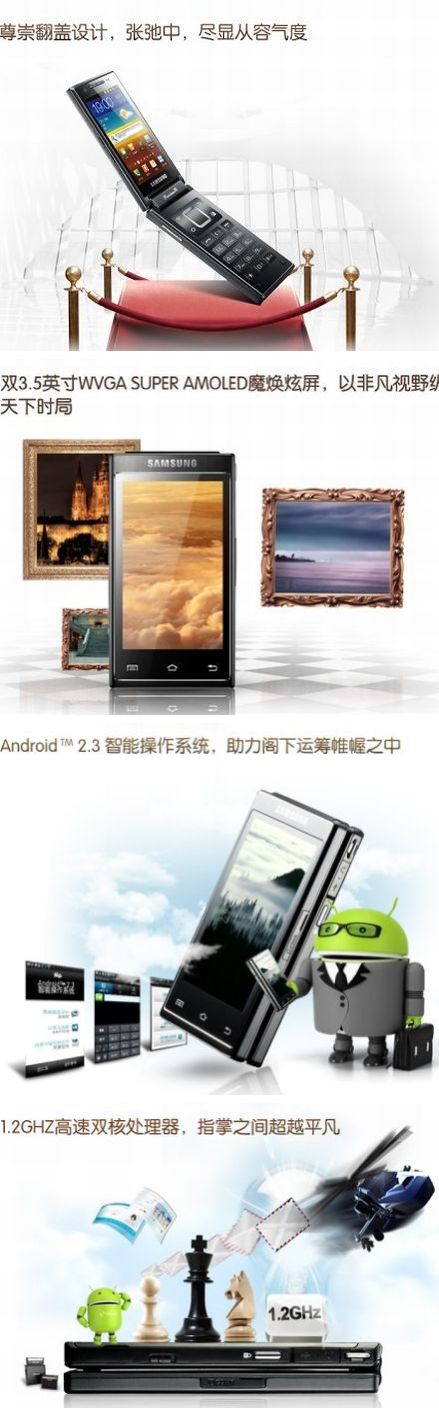 A nagyobbik dél-koreai gyártó legújabb telefonja mindenre rádupláz, a Samsung W999-ben ugyanis két képernyő, kétmagos processzor és két megjelenítő is megtalálható. A W999-ben adott két darab, egyenként 3.5 col képátlójú, 480×800 képpont felbontású érintőkijelző, mindez Super AMOLED alapokon. Az igen nehéz, 206 gramm tömegű készülék tudáslistájában megtalálható továbbá egy kétmagos, 1.2 gigahertzes Qualcomm MSM8660-as processzor, Android 2.3 Gingerbread rendszer, egy öt megapixeles kamera, GSM és CDMA EV-DO 3G hálózati támogatás, Bluetooth 3.0, valamint dual SIM kezelés is. A mobil a kínai China Telecom szolgáltatónál lesz megvásárolható brutálisan magas, 1570 dolláros áron jövőre.