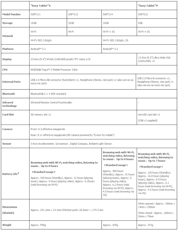 A Sony tegnap bemutatta két internettábláját az IFA2011-en, ezek a Sony Tablet S és a Sony Tablet P. A Tablet S-ben egy 9.4 colos érintőkijelző és Android 3.1 Honeycomb rendszer található, ezt egy kétmagos, 1 gigahertzes Nvidia Tegra 2 processzor szolgálja ki, a megjelenítő 1280×800 pixel felbontású. A Tablet S az Egyesült Államokban debütál szeptemberben, a 16 gigabájtos 500 dollárt, míg a 32 gigabájtos 600 dollárt kóstál majd. A Tablet S-ből egyelőre csak Wi-Fi-s változat készül, GSM-hálózaton is használható nem.