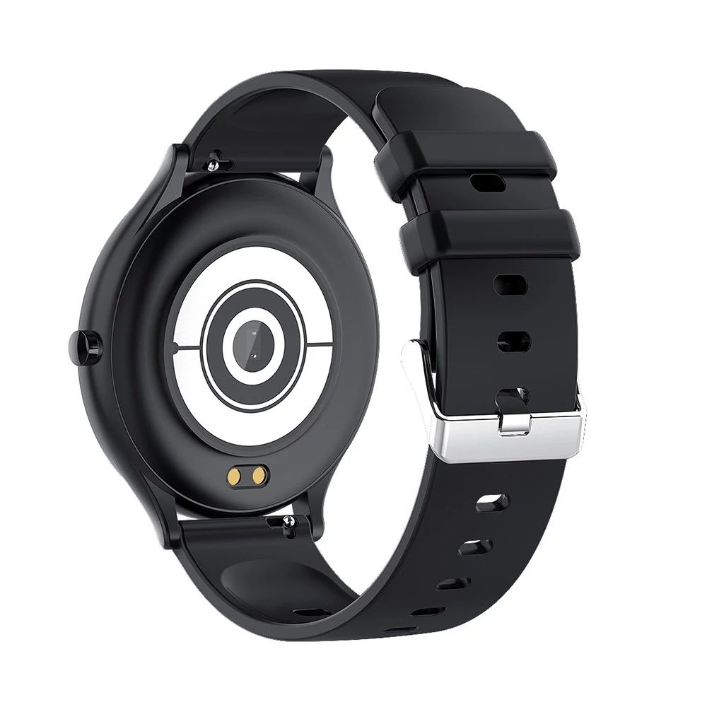 A Bakeey QW13 érdekessége, hogy nem másolja egyetlen nagy név valamelyik készülékét, abszolút saját a dizájn. Az, hogy kerek a kialakítás, nem újdonság, ám a kivitelezés szokatlanul jól sikerült, ugyanis nagyon vékony lett, végre nem egy bumszli kütyüt kell a csuklónkra tenni. Az óra átmérője 42 mm, a vastagsága 9 mm. A kijelző 1.28 colos, 240×240 pixelen láthatjuk a tartalmat az LCD panelen.