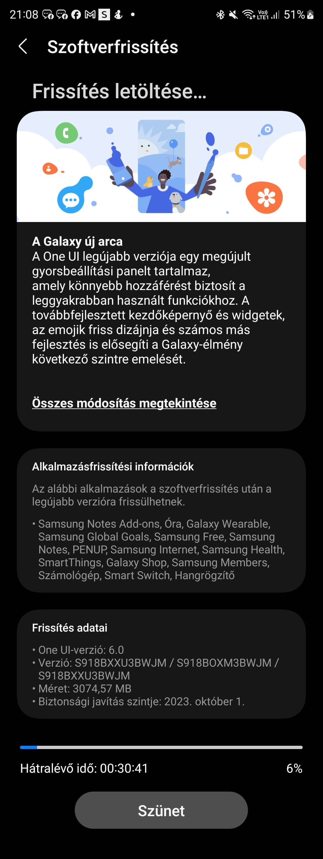 A szerkesztőségünkben található Samsung Galaxy S23 Ultrára tegnap este kezdtük el letölteni a 3 gigabájtos frissítést. A frissítés minden részlete itt olvasható.