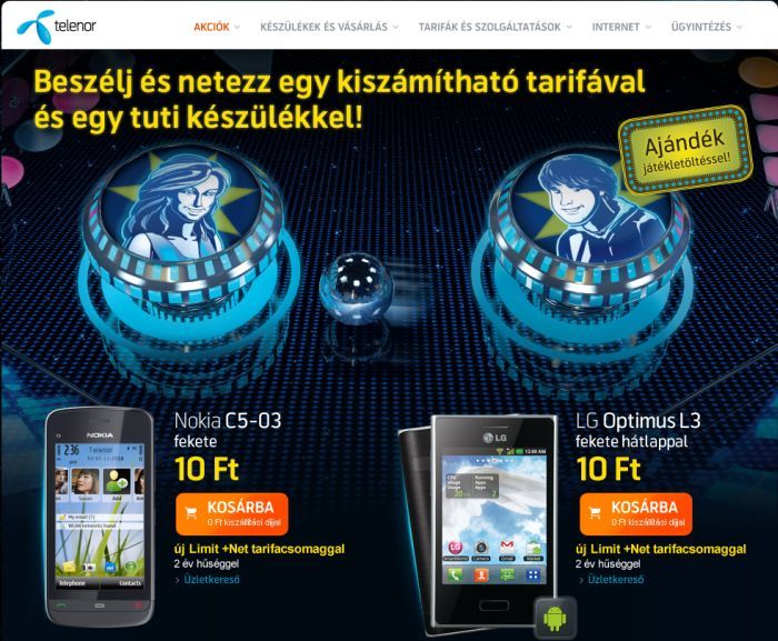 A Telenor szintén mától megújítja a nyári akciójának készülékkínálatát. A szeptember 3-ig tartó promócióban továbbra is tíz készüléket lehet rendkívül kedvező áron, mindössze 10 forintért hazavinni, a megújuló palettán pedig több népszerű androidos és Windows Phone-os készülék is található. A korábbinál még sokszínűbb kínálatban ezúttal a Huawei Ascend Y200, a HTC Wildfire S, az LG Optimus L3, a Nokia C2-01, a Nokia C5-03, a Nokia Lumia 610, a Samsung Galaxy mini, Samsung Galaxy Y, a Sony Ericsson Xperia ray és a ZTE Atlas 3.5W szerepel. A készülékek meghatározott, új Telenor lakossági számlás előfizetés vásárlása vagy a Bónusz Program igénybevétele esetén érhetőek el, kétéves hűséggel és kétéves tarifamegtartás mellett.