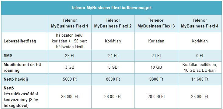 - A Telenor MyBusiness Flexi tarifák között bármikor rugalmasan és díjmentesen válthatnak, akár kisebb csomagra is.