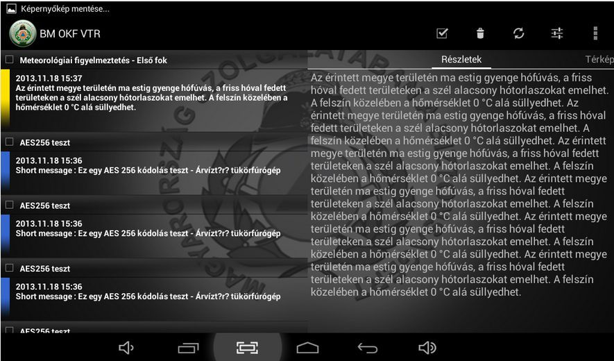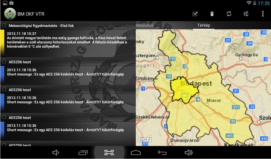 Okostelefonokra és táblagépekre készített, országosan bárki által ingyenesen elérhető alkalmazást a BM Országos Katasztrófavédelmi Főigazgatóság. A 21. század elvárásainak megfelelő veszélyhelyzeti tájékoztató rendszer a Rádiós Segélyhívó és Infokommunikációs Országos Egyesülettel és a Microsoft Magyarország Kft.-vel közös fejlesztés révén valósult meg.