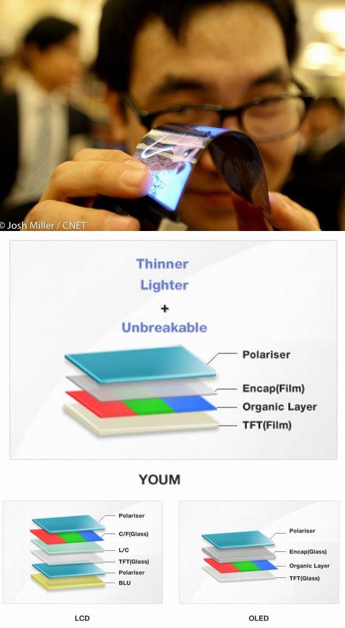 A nagyobbik dél-koreai gyártó beregisztráltatta a Youm márkát, mégpedig a flexibilis, rugalmas megjelenítõk számára. A vállalat az új fejlesztésû kijelzõket széles körben kívánja majd felhasználni, így nemcsak telefonokban, de e-könyv olvasókban, digitális fényképezõgépekben, videóchat rendszerben, stb. A flexibilis AMOLED kijelzõk a Samsung szerint abszolút törhetetlenek, bár nyilván lesznek lelkes tesztelõk, akik megoldják eme "gondot". A Youm megjelenítõk a 2011-es CES-en mutatkoztak be elõször, akkor a 4.5 colos, 480×800 képpont felbontású bemutatódarab mindössze 0.3 mm vékony volt. A gyártó úgy gondolja, a flexibilis kijelzõ lehet a belépõ az augmented-reality rendszerekkel együtt a valódi 3D képekhez.