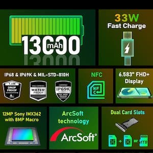 Az Oscal bemutatja új, strapabíró telefonját, az Oscal S80-at 13.000 mAh-es akkumulátorral és 33W-os gyorstöltéssel.