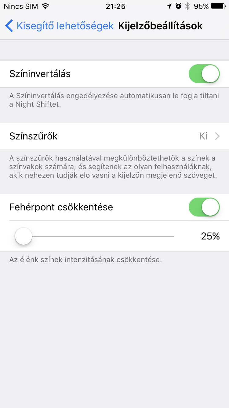 Átszaladtunk az előbb a kijelzőn. 4.7 col, 750×1334 pixel felbontás, 326ppi pixelsűrűség, IPS LCD, RGB mátrix, nagyjából így írható le legjobban a tudás. A 3D Touch is támogatást élvez, ezzel ugye tavaly találkozhattunk először. Az új Retina kijelző az Apple szerint huszonöt százalékkal fényesebb (kézi állítással 560, automatán akár 660 nit) és több szín megjelenítésére képes, bár ez utóbbit nem valószínű, hogy bárki is valóban észreveszi. A feketék valóban feketék, a kontrasztarány 1603:1. A legjobb azonban mégis a színkalibráció, amely élethű, nem túlszaturált és nem is fakó. Az Apple a Night Shift módot ajánlja akkor, ha este is használjuk a telefont, mivel ekkora a kék színt kvázi kiveszi a rendszerből és a fehérből is sárga lesz, szemkímélő üzemmódra vált. Kézileg és időzítve is beállítható a Night Shift.