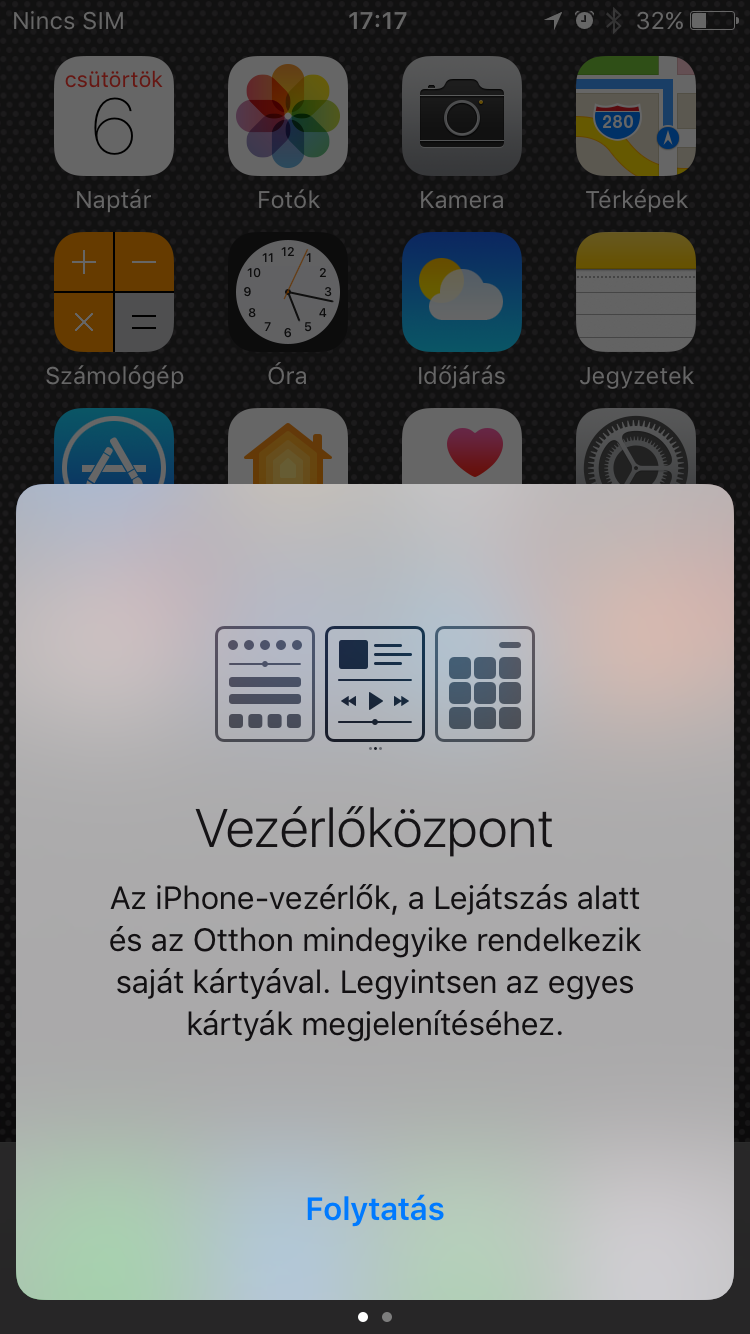 A főképernyőn található ikonok mappákba rendezhetők, widgetek továbbra sem érhető el úgy, ahogy az androidos készülékeknél, egy külön képernyőn, a Today-en találhatók meg. Az értesítési központ (más néven lehúzható redőny) androidos számára nehezen megszokható, hiányoznak a toggle ikonok és egyéb apró, okos funkciók, melyek egy húzással elérhetők. Persze ezek alulról előhalászhatók szerencsére egy ideje már iOS-en is, extraként rögtön két füllel, a másodikon a zenelejátszó kezelhető. A beállításokban minden megtalálható értelemszerűen, amire szükség lehet, bár tény és való, hogy nem az Apple megoldása a legjobban szervezett Beállítások menü, vannak benne következetlenségek, de a kereső sokat dob rajta. Kár, hogy nem intelligens és nem tanulja meg a sűrűn használt funkciókat és az ikonokra hosszan nyomva sem jön elő az adott beállítási lehetőség, pedig Androidon ez évek óta működik.