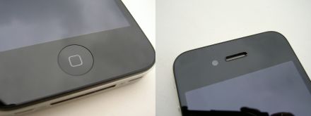 Az iPhone 4 előlapja először semmi izgalmasat nem takar, hiszen látható a megszokott egy darab hardveres gomb, felül viszont adott egy másodlagos kamera a videohívásokhoz. A nagy meglepetés, legalábbis ami döbbenetet okoz, az a kijelző. Az Apple ugyanis az új modellhez új megjelenítőt készített, hogy a konkurenciával jogosan felvehesse a versenyt – az Apple-t ismerve: hogy előttük járjanak –a régebbi 480×800 képpontos változatokat 960×640 pixel felbontású, TFT LCD verzióra cserélték.