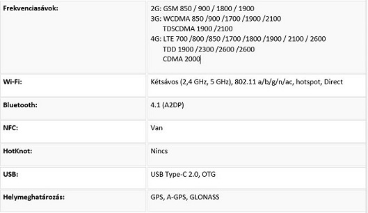 Adatkommunikációs képességek tekintetében minden adatott a boldogsághoz. Nem maradt ki egyetlen hazai frekvencia sem, így a B20-as 800 MHz-es LTE sáv, valamint a VoLTE technológia is támogatott, kár, hogy ez utóbbit egyelőre még csak a Telekom bizonyos csoportja tudja kihasználni. A kétcsatornás Wi-Fi átlag feletti érzékenységgel rendelkezik. Bluetooth kapcsolaton keresztül a több órás zenehallgatás minden esetben problémamentes volt. Szenzorokból sem szenved hiányt a készülék, van NFC is, infra azonban nincs. Autós navigáció során a készülék csillagos ötösre vizsgázott, a pozíciószerzés gyorsan megtörtént, a jelet utána végig stabilan tartotta.