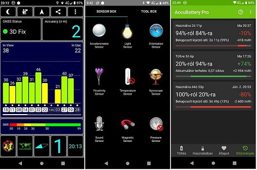 Az USB OTG-lehetőség külső tárhelyhez és egyéb perifériákhoz– például egér vagy billentyűzet – jön jól, amit személy szerint gyakran használok. Szenzorokkal is jól el vagyunk látva, van NFC, ami az aszfalt dzsungelekben jól jön, bár valódi terepen, erdőkben, mezőkön, hegyekben több haszna van légnyomásmérőnek és a hőmérőnek, ami kimaradt.