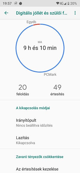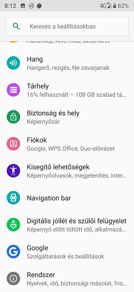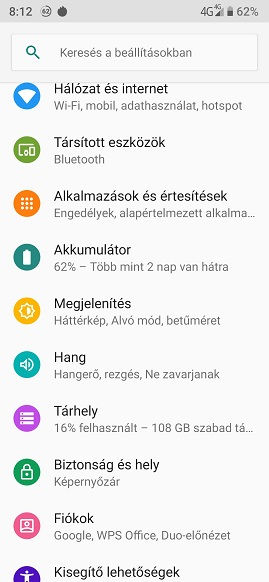 A fogásérzet teljesen rendben van, bár a fém és üveg kombináció miatt a telefon könnyen kicsúszhat az óvatlan felhasználók kezéből. Az edzett üveggel és enyhén oleofób felülettel ellátott, 2,5D kialakítású kijelző, 6,3 hüvelykes, Full HD+ (1080×2340 pixel) felbontású IPS LCD megjelenítő szintén a jobbak közül való. A 409 ppi-s képpontsűrűségű, nagyon jó fényerejű panel napfényben is egész jól látható és a betekintési szögekkel sincs probléma. Rendelkezésre áll az ütemezhető olvasó mód, ami Éjszakai fény néven fut, a Megjelenítési beállítások alatt.