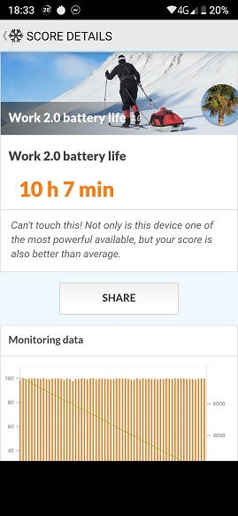 A remekül összepasszított hardver-szoftver páros és a 4000 mAh kapacitású Lithium-Ion akkumulátor üzemideje parádés. Kicsivel több mint két nap használat után, 8 órás kijelzőidővel merült 20%-ra a telefon. A szokásos YouTube videónézős teszt alatt, 2 óra alatt csökkent a töltöttség 10%-ot. A Work 2.0 battery life tesztben 10 óra 7 perces eredményt produkált a mobil. Az akkumulátort feltölteni a mellékelt 5V/2A hálózati adapterrel, 20-ról 100%-ra 137 perc alatt lehet.
