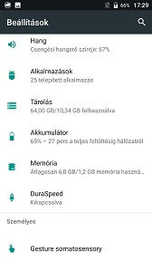 A beállításokban találunk pár hasznos kiegészítést, mint például a kijelző kalibrálásra használható MiraVisiont, vagy a háttérben futó alkalmazások engedélyezéséhez a DuraSpeed menüt. További hasznos extra az is, hogy egy applikációt lehet társítani a Home gomb kétszeri nyomásához, a telefon csörgésekor a vaku villogtatása, vagy a másodperc megjelenítése az állapotsávon. A szoftver egyébként nagyon jól működik, gyors és gördülékeny, az első indítás után rögtön három OTA frissítéssel várt a rendszer.