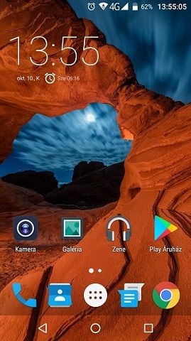 A kijelző fölött a többszínű értesítési LED, a közelségérzékelő szenzor, a beszédhangszóró, és az előlapi kamera mellett még egy LED villanó is helyet kapott, ami elég ritka ebben az ársávban. A kijelző alatt találjuk a lenyomható és egyben érintésérzékeny felülettel bíró Home gombot, ami több feladatot is ellát. Egyrészt ide építették be az ujjlenyomat-szenzort, amellyel 10-ből minimum 9-szer sikerült feloldani mindenféle gond nélkül a telefont, másrészt a virtuális kezelőgombokat is képes helyettesíteni, amelyekre egyébként, ha nincsen szükség, kikapcsolhatóak, ahogyan például nálam is volt. A Home gombot megérintve visszaléphetünk, hosszú lenyomással pedig a kezdőképernyőre ugrás funkciókat érjük el.