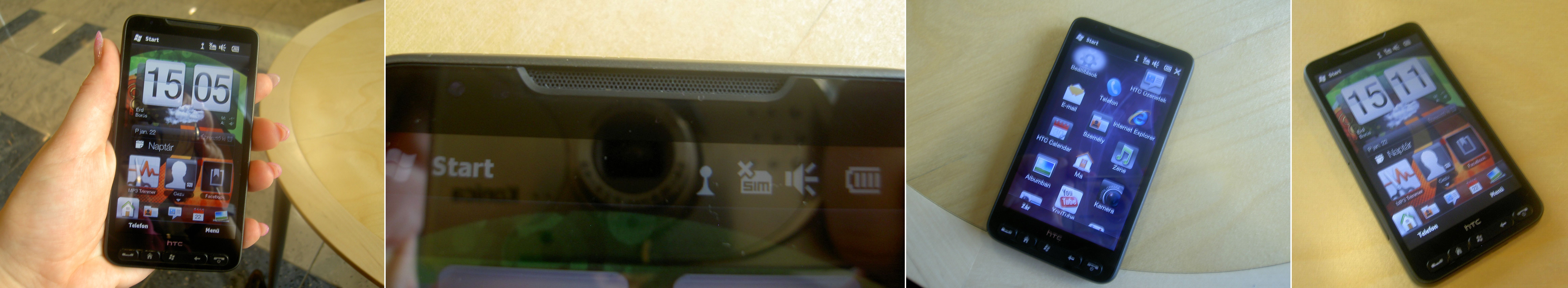 A HD2-t kézbevéve az első döbbenetet a kijelző mérete, majd a felbontása okozta, tipikusan se-köpni-se-nyelni kategória. Döbbenetesen naaagy a kapacitív, dual touchra képes érintőkijelző, amely nem mellékesen a mostanában divatba jött 480×800 képpontos változat, a képátló 4.3 col – simán üti apum GPS-ének méreteit. Zárójelben jegyezném meg, hogy ez a világ legelső Windows Mobile készüléke, amely kapacitív megjelenítőt kapott!
