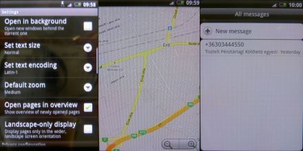 Az üzeneteknél hasonlóan jó a helyzet, a szöveg begépelése a virtuális billentyűzeten nagyon egyszerű, ez az egyik legjobb ilyen gombsor, amellyel találkoztam, az első ilyen pozitív meglepetés a Nexus One tesztjénél ért.