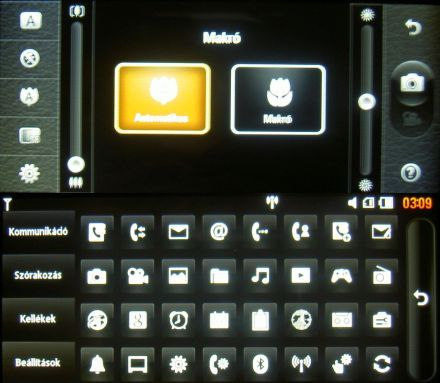 A kamera egy öt megapixeles, LED vakus változat, amely kezelőfelülete elsőre túl soknak tűnhet, pedig egyáltalán nem kell két diploma a kezelésének elsajátításához. A fényerő és a nagyítás, de egy pillanat alatt elérhető a látvány mód (automatikus, portré, tájkép, sport, éjszaka), a vaku és a makró vagy automatikus fókusz, a képminőség. A további funkciókhoz a beállítások menüre lesz szükségünk. Itt digitális fényképezőgépéhez hasonlít a beállítási rendszer, egy tárcsa az alábbi lehetőségeket tárja elénk: kameraváltás (előlapi, hátlapi kamera használata, méret, színeffektus, fehéregyensúly, önkioldó, felvétel készítési mód (normál, folyamatos, összefűzött, mosoly-, szépségfelvétel), ISO (100-200-400-800 és automatikus), memória, képstabilizálás, fókusz mód (közép, manuális, arckövetés), kamera hang, pozícionáló rács, geotagging, gyári beállítások.
