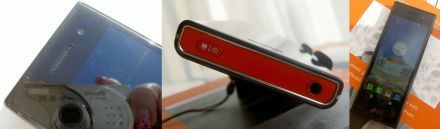 A hátlap is diszkrét, csak egy halvány LG és egy Schneider-Kreuznach logo jelzi a két cég összefogását, ezek felett az öt megapixeles, LED vakus kamera optikája pihen. A hátlap levétele után férhetünk hozzá a SIM kártyához, valamint a microSD kártyához (amely nem tartozéka a mobilnak), jó hír, hogy ez utóbbihoz legalább az akkumulátort nem szükséges kivenni.