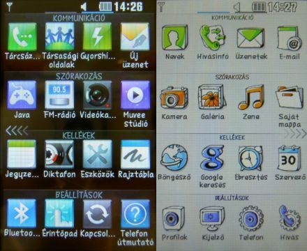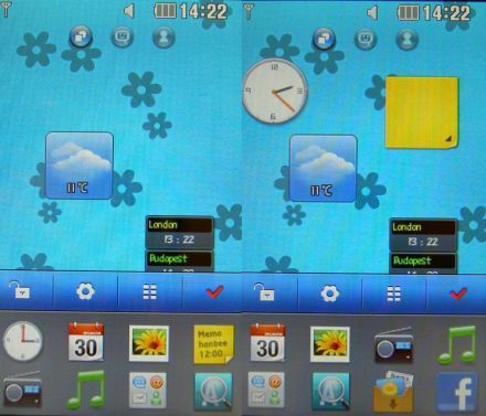 Az alap főképernyő három oldalas, az elsőre widgetek pakolhatók ki (például a naptár, óta, jegyzetek, kamera, zene, kereső, Facebook, stb.), ezek szabadon szerkeszthetők a megadott listából vagy mind eltüntethetők akár, a háttér pedig többféle, jópofa animált lehet, mindegyiken megtalálható a widgetek ötletes helye. A második a Livesquare, amelyről már írtunk hosszabban, míg a harmadik főképernyő gyakorlatilag gyorshívóként funkcionál, maximum nyolc kedvenc kontaktot helyezhetünk el itt.