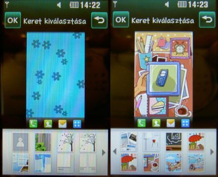A beállítások között variálható a színeffektus, a fehéregyensúly, avan éjszakai mód, önkioldó, minőség, nézet, tárhely kiválasztás, a készített fotó megjelenítése, ikonok elrejtése, kamera hang, pozícionáló rács, élesség, sorozatkészítés, képfelbontás módosítás. Jó hír, hogy a kép készítése és elmentése a telefonhoz képest szokatlanul gyors. Videót maximum 320×240 képpont felbontásban rögzíthetünk.