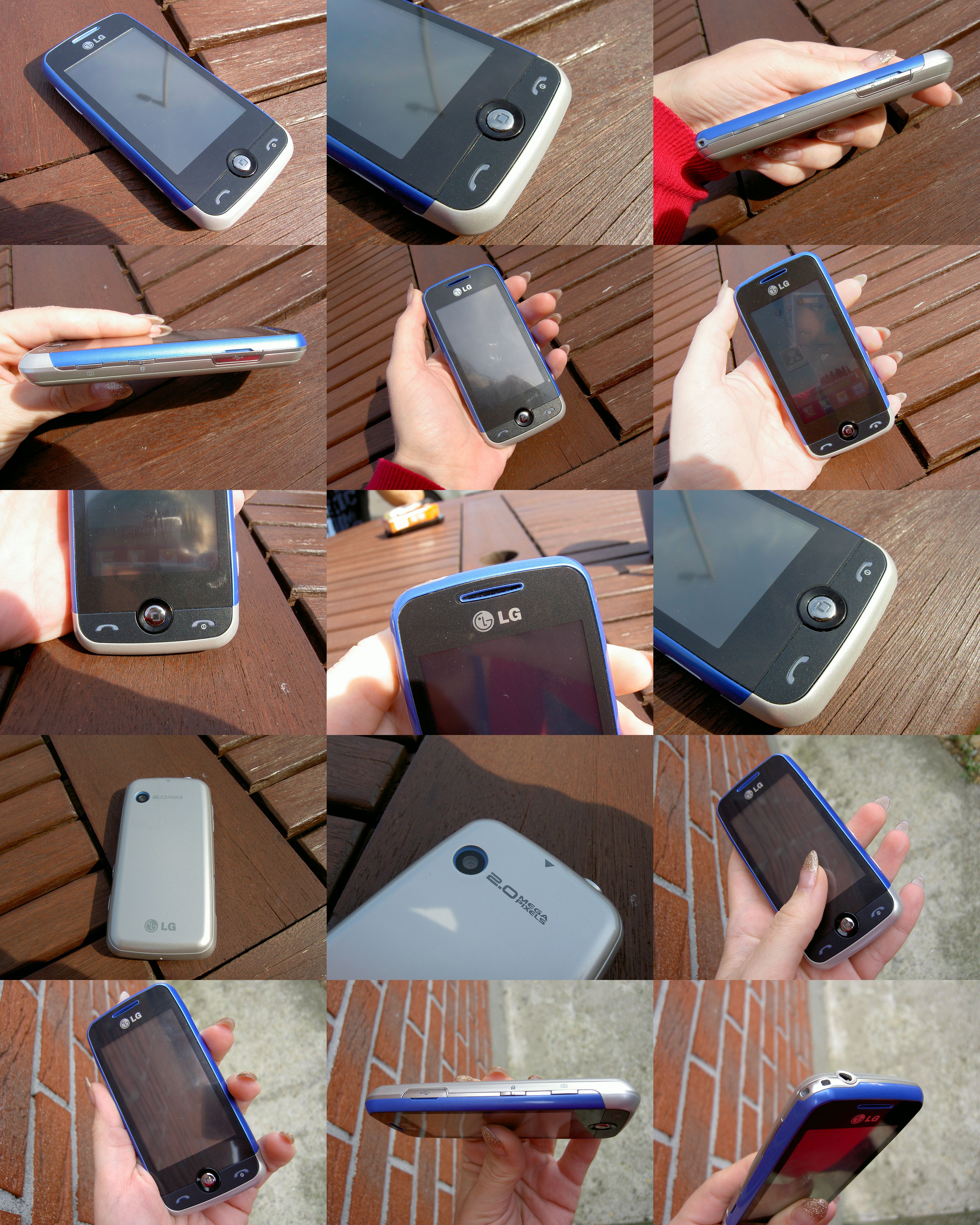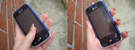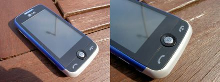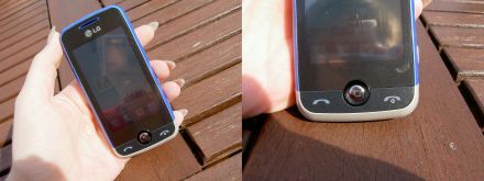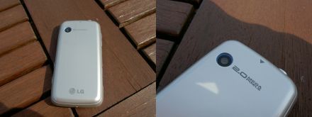 Az ezüst színű látlap egyhangúságát csak a két megapixeles kamera objektívje és alul egy LG logo töri meg. A hátlap egyébként elég könnyen lejön, remélhetőleg a későbbiekben nem lesz „önjáró”. A GS290 tetején látható a 3.5 mm-es jack aljzat, mellette pedig a bal felső sarokban a nyakbaakasztó helye. A baloldalt a hangerőgomb párosa és a védett microSD kártya slotja foglalja, míg jobb oldalra jutott a microUSB csatlakozója, a képernyőzár gombja, valamint a kamera gyorsgombja.