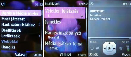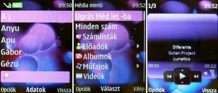 Multimédia címszó alatt rálelhetünk a zenelejátszóra, amely ugyanaz, amire a Nokia 5800 modell is frissíthető volt nemrégiben, tehát egy vadiúj programot köszönthetünk. A zenelejátszó képes ID3 tagek alapján szűrni, albumborítót kitenni, készíthetünk lejátszási listát, valamint találunk hangszínszabályzót is, amelyek előre definiált értékeket állítanak be, de két egyedi is variálható. Nem lenne teljes a zenei kínálat FM-rádió nélkül, ehhez szükségünk van a headsetre, amely antennaként funkcionál. A tudása pont elég, megjeleníti az RDS információkat – mintha hazánkban olyan sok lenne –, valamint automatikusan keresi és menti a csatornákat. Jó tudni, hogy egyrészt igen hangos a telefon kihangosítva is, másrészt pedig igen tisztán szól, furcsa mód nem igazán recseg be a műanyag kis doboz, nagy piros pont.