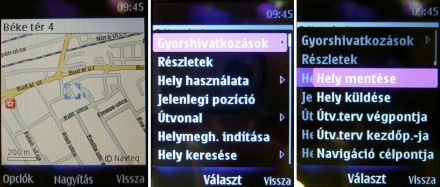 Az ingyenes – és opcionálisan megvásárolható Bluetooth GPS-szel összekötve akár internetkapcsolat nélkül is használható – Nokia Ovi Maps navigáció a 2.4 colos kijelzőn ugyan nem maga a tökély, de teljesen jól használható. Tudásban természetesen elmarad a Symbianos készülékeken megszokottól, így hangos navigációt vagy útvonaltervezést ne várjunk el Bluetooth GPS nélkül. Ha pedig már az internetnél jártunk, akkor fontos lehet, hogy maximum 3G-n használhatjuk a hálózatot, mivel a HSDPA kimaradt a repertoárból (nem is nagy baj ez, ha a 3G sem lenne, akkor már szívnánk a fogunkat).