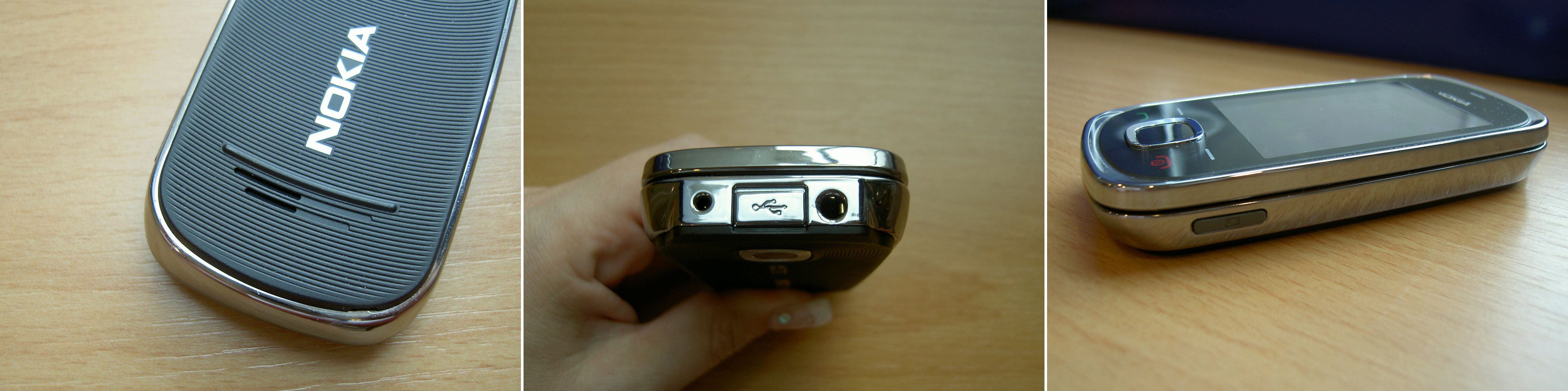 A mobil bal oldala és alja üres, csak a króm szín csillog vissza ránk, jobb oldalon csak a kamera gyorsgombja hever, sehol sem találhatók a hangerőgombok. A telefon tetejére került – új Nokia szokás szerint – szinte minden, így a vékony csatlakozós töltő, a microUSB – tölt is róla - és a 3.5 mm-es jack dugó portja.