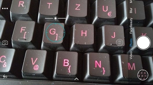 Az aktuális trendeknek megfelelően két darab kameraegységet találunk a hátlapon, így Blur mód (Bokeh) is bekapcsolható, ilyenkor a fókuszálásra kijelölt terület éles, körülötte viszont minden elmosott, portré fotózáshoz kiváló az effekt. Szintén a dual kamera miatt van még optikai zoom és monokróm mód is. Sajnos ebben az árkategóriában ezek csak szoftveres megoldások, a másodlagos kamera gyakorlatilag csak látványelem. A Camera2 API támogatás hiánya miatt, a lehetőségeink korlátozottak a PRO módban való fotózáskor, de a fehéregyensúlyt, az ISO-t és az expozíció-korrekciót azért beállíthatjuk.
