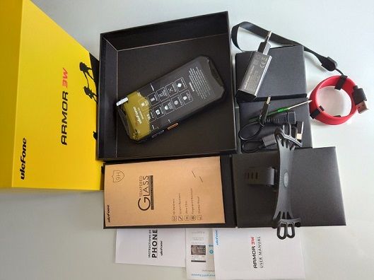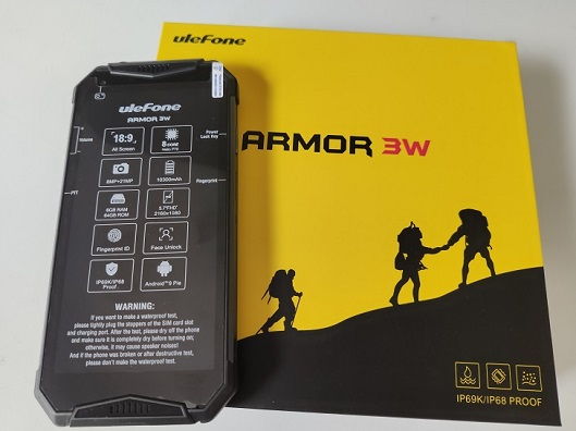 Az Ulefone Armor 3W doboza megegyezik az Armor 6E esetében látottakkal, csak éppen dupla akkora méretű. Nem emlékszem, hogy láttam-e valaha ilyen batár nagy és nehéz telefonos dobozt.