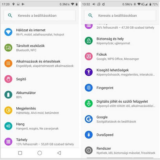 A rendszer teljes mértékben támogatja a magyar nyelvet, bár az extra menüpontokban érdekesen beszéli és vannak lefordítatlan részek. A dupla koppintással történő képernyőzárás, az emeléssel végrehajtható felébresztés, a hálózati menedzser, a LED értesítések személyre szabása, vagy a lefordítással történő némítás a vicces fordítás ellenére frankón működik.