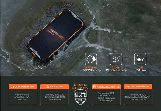 A minősítés lényege, hogy extrém mechanikai hatások és hőmérsékleti viszonyok között tesztelik az eszközöket. Ergo az alacsony nyomás, a szélsőségesen magas vagy alacsony hőmérséklet, a só, a por, a sav, a penész, a magas páratartalom és az ütések sem árthatnak az Armor 3W-nek.