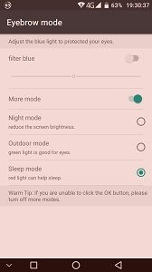 Látható a képernyőmenéseken, hogy a plusz funkciók esetében nem foglalkoztak a lokalizációval. A hasznos extra kiegészítők a fenti képeken láthatóak. Az első és talán a leghasznosabb az állítható színű (piros, zöld, kék) LED értesítések beállítása az események jelzéséhez. Igencsak hasznos az olvasómód is, amelyet az Eyebrow mode menüben aktiválhatunk. Itt a kijelzőt lőhetjük be a különböző környezeti fényviszonyokhoz úgy, hogy az a szemünknek a legmegfelelőbb legyen.